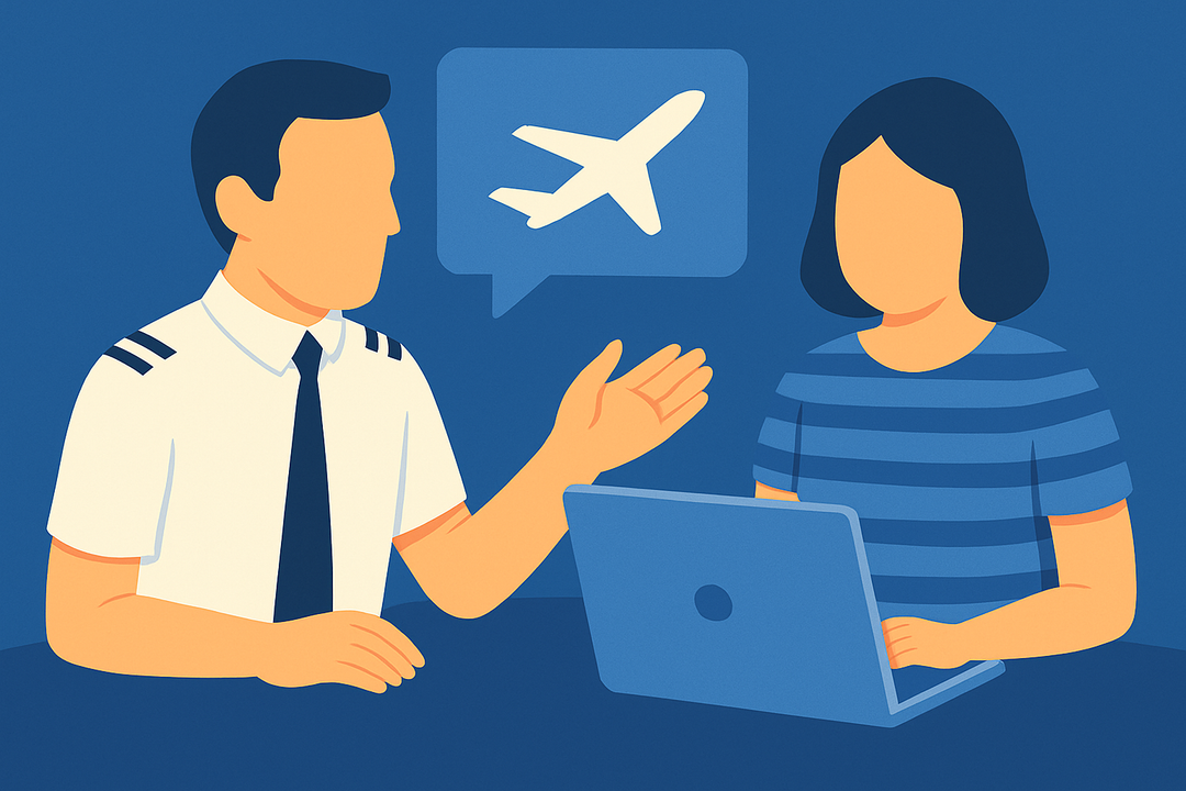 Finally, we recommend that you pay attention to common errors that are often made when translating from your native language to English. In our preparation booklet, you will find an overview of the correct use of future, present, and past tenses, prepositions, and adjectives. Especially if your language skills are exactly between two ICAO levels, paying attention to these details can make a significant difference and help you take a big step forward.